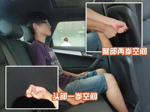 測(cè)試者座椅調(diào)整合適以后,正常坐姿時(shí)頭部有一個(gè)拳位余量,腿部活動(dòng)自由,沒有特別拘束的感覺;后排空間表現(xiàn)正常;測(cè)試者正常坐姿下,腿部空間表現(xiàn)很好,有兩個(gè)拳位余量,頭部表現(xiàn)尚可,有一拳空間,測(cè)試者沒有壓迫感。(測(cè)試者身高178CM)