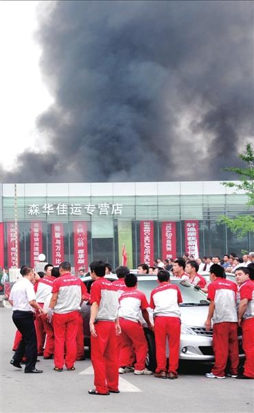 起火后,有人撥打電話報警。4S店的一名工作人員稱,起火時,大家都忙作一團,將緊鄰起火點的一些辦公室內(nèi)的電腦和文件全都“搶救”了出來。事故發(fā)生后,亞運村、奧運村和清河3支消防中隊的12輛消防車趕到現(xiàn)場撲救。一個多小時后,大火被撲滅。