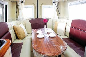 在寬敞的房車?yán),可以煮飯、打牌、睡覺等。