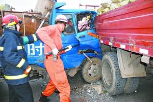 昨天下午5時許,大興區(qū)黃村鎮(zhèn)劉村附近,一輛農(nóng)用四輪車和一輛卡車相撞,農(nóng)用四輪車上兩人被卡,大興區(qū)西紅門消防中隊(duì)迅速趕到現(xiàn)場,將被困人員救出,所幸兩人無生命危險(xiǎn)。