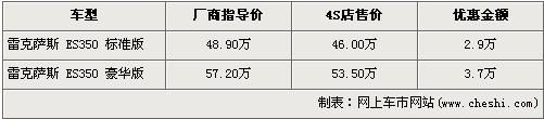 隨著雷克薩斯ES240的即將引進,雷克薩斯ES系列的入門價格被放低,同時也加大了與同級車型的競爭力度,并且據(jù)我走訪多家北京雷克薩斯經(jīng)銷店獲知,目前在售的雷克薩斯ES350的兩款車型均有現(xiàn)金優(yōu)惠。雷克薩斯ES350標(biāo)準(zhǔn)版售價48.9萬元,經(jīng)2.9萬元的優(yōu)惠后售價降到了46萬元,雷克薩斯ES350豪華版的售價為57.2萬元,經(jīng)3.7萬元的優(yōu)惠后售價降到了53.5萬元。