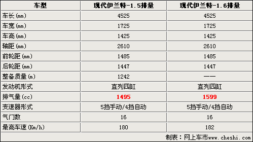 從上表我們看出,北京現(xiàn)代即將推出的1.5排量的伊蘭特在車身尺寸上和1.6排量的車型完全一樣。只是發(fā)動機(jī)換成了1.5升的G4EC汽油發(fā)動機(jī)。變速器與1.6車型一樣,都是5擋手動變速器和4擋自動變速器。由于排量的降低,1.5排量的伊蘭特最高是時(shí)速值達(dá)到了180 Km/h,1.6排量的車型可以跑到182Km/h。與此同時(shí)根據(jù)網(wǎng)上車市價(jià)格檢測系統(tǒng)顯示,目前伊蘭特的優(yōu)惠幅度又有所增加,最高優(yōu)惠幅度已經(jīng)達(dá)到了1萬。具體車型售價(jià)見下表。