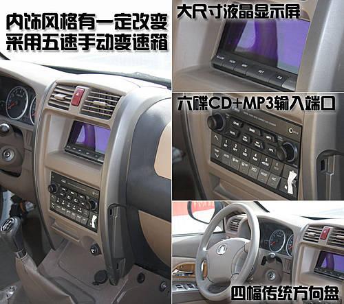 哈弗H5的內(nèi)飾也比較符合長(zhǎng)城汽車SUV產(chǎn)品的設(shè)計(jì)風(fēng)格,中央控制區(qū)仍然是方方正正的造型。不得不說的是,哈弗H5內(nèi)飾的用料依然顯得塑料感太強(qiáng)。但這款車的內(nèi)部配置卻非常齊全,不僅配備了六碟CD和MP3輸入端口,還配備了大尺寸液晶顯示屏。哈弗H5采用的四幅式方向盤顯得比較簡(jiǎn)單,沒有音響按鍵和定速巡航功能。