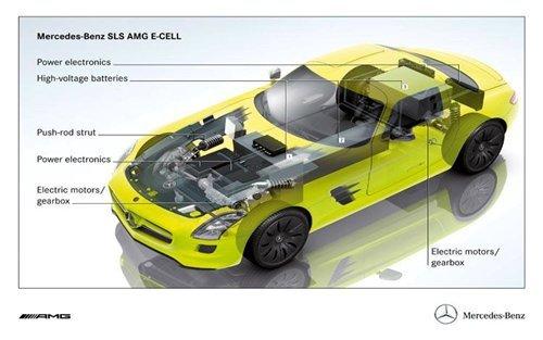 SLS E-Cell將有四臺(tái)電動(dòng)機(jī)驅(qū)動(dòng)(前后軸上各有兩臺(tái)),因此,新車將會(huì)是一款全輪驅(qū)動(dòng)車型。每臺(tái)電動(dòng)機(jī)的最高轉(zhuǎn)速都可達(dá)到12000rpm,合計(jì)輸出到車輪的動(dòng)力為526馬力和870N·m。SLS E-Cell的百公里加速預(yù)計(jì)可在4秒內(nèi)完成。