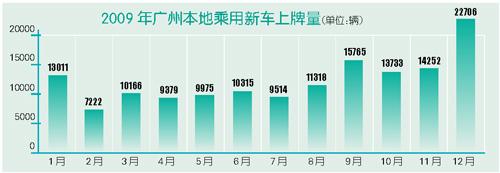 數(shù)據(jù)顯示,去年12月份廣州單月新車上牌量為22706輛,同比增幅達到全年銷量的最高點,日均上牌乘用車新車732輛。2009年最后一個月車市的火爆為廣州2009年全年乘用新車上牌量畫上了圓滿的句號,同時也帶動了廣東省新車銷量創(chuàng)下“新高”——當(dāng)月以96352輛的成績創(chuàng)造了全年單月乘用新車上牌量的新紀(jì)錄。據(jù)悉,深圳、東莞、佛山等地的全年銷量最高點均出現(xiàn)在12月份。
