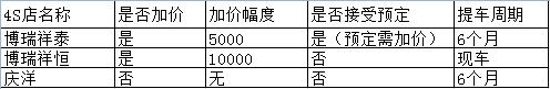 附:部分4S店的加價(jià)情況(以下均為普通版高爾夫6的加價(jià)幅度,所有加價(jià)情況均為銷(xiāo)售人員口頭傳達(dá),可能會(huì)發(fā)生變化)