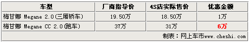 與雪鐵龍、標致同為法系知名汽車制造商的雷諾,以進口方式引進國內的車型有風景、梅甘娜以及拉古娜等多款車型。其中梅甘娜車型分為三廂版本和跑車兩個版本。近日根據網上車市價格檢測系統顯示,梅甘娜全系車型均出現了價格松動,三廂普通版車型可優(yōu)惠1萬元,而跑車版梅甘娜的優(yōu)惠幅度達到6萬具體車型售價見下表:
