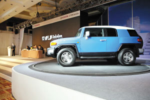 發(fā)布會上,豐田汽車中國本部長代代木昭展示了2006~2007年SUV車型在中國市場的飛速增長趨勢,表明豐田從去年開始已注視中國SUV市場,豐田今年投放三款重磅SUV車型:漢蘭達、蘭德酷路澤以及FJ酷路澤均選在年內(nèi)上市發(fā)布價格,占領了國內(nèi)市場的中、大型SUV市場一定份額。
