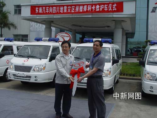 5月14日,在福建省紅十字會的見證和協(xié)助下,由東南汽車捐贈的十輛價值百萬元的救災急需東南得利卡救護車啟運四川地震災區(qū),為災區(qū)民眾奉獻愛心,攜手人道,協(xié)助救助災難中的同胞和親人。同日,東南汽車號召全體員工向災區(qū)人民獻愛心,得到公司兩千多名員工的積極響應。