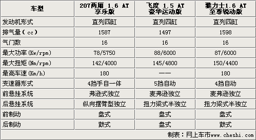 標致207、新飛度和雅力士這三款車型均搭載的是直列四缸發(fā)動機,在排量方面存在著略微的差距。標致207和雅力士由于排量較大,所在動力輸出上要優(yōu)越于新飛度。在發(fā)動機技術方面三款車型均運用了各家的最先進技術,標致207的1.6升發(fā)動機為標致307標配的高性能發(fā)動機,本田的i-VTEC和豐田的雙VVT-i技術均可以使發(fā)動機在具有良好節(jié)油性能的同時得到最大的動力輸出。剎車系統(tǒng)飛度運用了具有良好散熱性能的前后盤式剎車,而標致207和雅力士則還是小型車上常見的前盤后鼓式剎車。