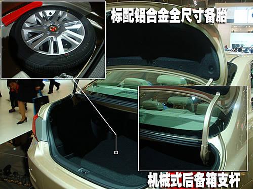 凱美瑞的行李箱蓋支撐方式是普通的機械連桿,從車內(nèi)打開時后備箱蓋會自動向上抬起以方便拿取行李。該車標配了一只全尺寸鋁合金備胎。