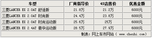 以純進(jìn)口車身份銷售的三菱LANCER EX憑借尚佳的質(zhì)量及性能受到消費者喜愛,但因制動缺陷導(dǎo)致召回又在消費者心中埋下了陰影。據(jù)網(wǎng)上車市網(wǎng)站了解,北京各家進(jìn)口三菱經(jīng)銷商處新車銷售未受影響,全系可給出6000元優(yōu)惠,除舒適車型以外,各款車型均有足夠現(xiàn)車可滿足廣大消費者的購車需求。詳情如下: