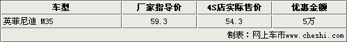 據(jù)英菲尼迪4S店銷售人員介紹,目前店內(nèi)現(xiàn)款M35車型的現(xiàn)車相對(duì)較全,若消費(fèi)者對(duì)于車輛的顏色及版本沒(méi)有特殊要求,可在展廳內(nèi)近距離接觸展車后直接付款購(gòu)買現(xiàn)車。銷售人員表示,近期在店內(nèi)購(gòu)買EX35車型的消費(fèi)者均可享受5萬(wàn)元的現(xiàn)金優(yōu)惠。