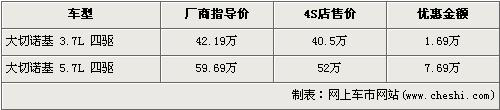 據(jù)經(jīng)銷商銷售人員介紹,大切諾基3.7L車型的優(yōu)惠金額為1.69萬(wàn)元,而高排量的5.7L車型優(yōu)惠金額為7.69萬(wàn)元,達(dá)到了全系的最高。在售的Jeep-大切諾基共分為3.7L四驅(qū)和5.7L四驅(qū)兩個(gè)車型。3.7L四驅(qū)型的優(yōu)惠金額經(jīng)1.69萬(wàn)元的優(yōu)惠后,售價(jià)降為了40.5萬(wàn)元。而排量稍大的5.7L四驅(qū)型的優(yōu)惠金額為7.69萬(wàn)元,降價(jià)后的售價(jià)為52萬(wàn)元。