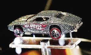 上個月,美國紐約,一輛以1∶64的比例制作而成的鉆石跑車亮相風(fēng)火輪(HotWheels)舉行的40周年慶典游行上。該鉆石跑車由著名珠寶設(shè)計師Jason Arasheben 設(shè)計而成,用在小車上的鉆石約有2700多顆,總量達(dá)23克拉,單鉆石的價值就達(dá)14萬美元。