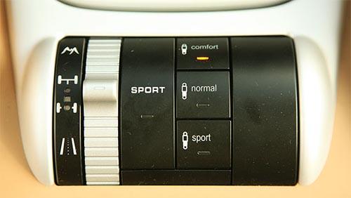 當然,如果在一般模式下,還嫌不過癮的話,那排檔桿后方的“Sport”運動模式鍵,這時就該提槍上陣了。一切換后,可以激活卡宴GTS這頭大動力怪獸,在“Sport”運動化模式下,格調(diào)完全與小排氣量發(fā)動機那種拉高待命轉(zhuǎn)速域因應沖刺的思維截然不同?ㄑ鏕TS行駛中切到“Sport”模式后,會發(fā)現(xiàn)右邊的PASM保時捷主動式懸掛調(diào)整系統(tǒng),也會連動至最硬朗設定的Sport模式,讓整臺車處于最運動化的設定。