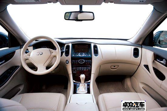 與X3注重動力與操控的主思路相反,EX35的跨界理念使它在舒適性方面贏得了不少實惠,轎車化的內(nèi)飾配置和舒適度,使得EX35在駕乘舒適性方面與X3之間形成了不小的差距。首先感受到的就是轎車式的內(nèi)飾布局以及座椅設(shè)計與SUV的典型設(shè)計背道而馳,至少在坐姿上找不出SUV的感覺,下陷式的座椅、視野模式完全是駕駛轎車的感覺。而且EX35的內(nèi)飾設(shè)計中透出不少舒緩的氣氛,大量曲線的應(yīng)用和圓滑的邊角過度帶來的是很輕松的視覺效果,與X3的棱角分明形成了鮮明的對比。淺色內(nèi)飾給車廂內(nèi)增加了不少明亮干凈的感覺,而且真皮包裹的多功能方向盤也采用了與內(nèi)飾主色調(diào)相同的淺色設(shè)計,這樣的設(shè)計也許是在有意通過這種并不耐臟的顏色來顯示EX35的擁有者們的身份。EX35形狀獨特的儀表盤、擋把上的金屬裝飾、運動場形的空調(diào)出風(fēng)口等這些別具匠心的設(shè)計,相信會吸引住不少女性消費者的目光。除此之外設(shè)計師們閑情雅致地在副座儲物箱的表面留下了3道凹痕,除了美觀與個性的效果外,似乎是在炫耀柔軟的材質(zhì)和精湛的工藝。