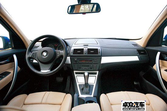 內(nèi)飾設(shè)計上X3也依然保留了寶馬的傳統(tǒng)風(fēng)格,深色中控臺在亞光鋁質(zhì)裝飾條映襯下,將車內(nèi)氛圍烘托得與機械性能一樣動感。沒有iDrive系統(tǒng)的鼎力支持和顯示屏的美化,多少讓人覺得中控臺“禿”了一些,但是按鍵依然布置得整齊有序。環(huán)顧車內(nèi),感覺X3的豪華程度比家族中的其他兄弟差了不少,除了做工精細的電動真皮座椅和全景式天窗還算符合X3的價格,據(jù)說購買新X3可以得到BMW增強版便攜式導(dǎo)航系統(tǒng),但是在這輛試駕車上沒有看到。最令人遺憾的是后排連獨立的空調(diào)出風(fēng)口也沒有,感覺還不如新3系的配置豐富。
