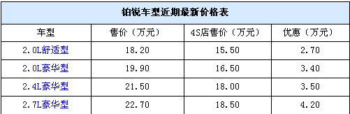 鉑銳:最高優(yōu)惠4.2萬(wàn)