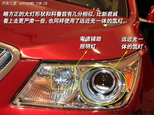 在細節(jié)上,新君越更加精致,前臉的大型鍍鉻格柵是家族傳統(tǒng),但新君越的格柵更加圓滑,更加具有通透感,大燈的形狀更向上翹,甚至達到了發(fā)動機蓋的中部,燈組應該是和新君威一樣的遠近光雙氙燈+彎道輔助照明燈。
