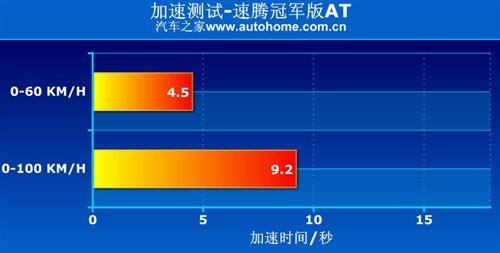 搭載了動(dòng)力強(qiáng)勁的發(fā)動(dòng)機(jī),又有性能超眾的輪胎,速騰冠軍版入選本文推薦車型似乎是毫無(wú)爭(zhēng)議的事情,但我們畢竟還得用事實(shí)說(shuō)話,因?yàn)槲覀兪怯杏残灾笜?biāo)的。首先是加速測(cè)試,速騰冠軍版自動(dòng)擋車型我們實(shí)測(cè)的成績(jī)是9.2s。