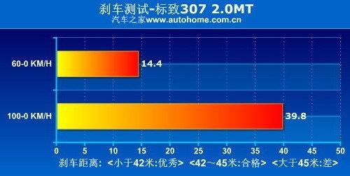 標(biāo)致307沒(méi)有裝備什么特殊的剎車(chē)系統(tǒng),也沒(méi)有速騰冠軍版那樣的寬胎,但剎車(chē)成績(jī)還是不錯(cuò)的,39.8米比我們定義的優(yōu)秀剎車(chē)距離最高線42米要短不少,而且在連續(xù)剎車(chē)測(cè)試中,剎車(chē)系統(tǒng)和輪胎的熱衰性控制的很好,基本沒(méi)有出現(xiàn)因過(guò)熱而增大距離的情況。只是由于307的懸掛調(diào)教偏軟,全力制動(dòng)時(shí)前懸掛被壓縮到極致,后輪幾乎沒(méi)有附著力,此時(shí)車(chē)輛穩(wěn)定性比較令人擔(dān)憂。