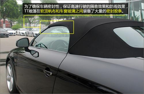 TT 敞篷采用的是軟頂,而并未隨大趨勢(shì)使用電折硬頂,軟篷的收折及儲(chǔ)存均比硬頂富彈性,優(yōu)點(diǎn)是無須占用車尾大量空間,篷身可選擇不同顏色,配搭出更多變化的視覺效果。而且,奧迪TT 敞篷采用的多層布制軟篷有優(yōu)秀的隔音效果,不必?fù)?dān)心高速行駛時(shí)會(huì)有巨大的風(fēng)噪。