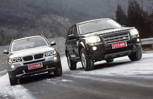 同出名門,且個性鮮明,在車身尺寸和價格上也都相近。因此,神行者2和X3自然而然成為直接競爭對手。有鑒于性能特點,在進入測試內(nèi)容前,我們先明確一下對它們的稱呼。顯然,“SUV”這個概念寬泛、模糊的名詞缺乏準確性。那就按照廠家各自的定位來歸類它們的屬性吧,路虎神行者2——越野車、寶馬X3——SAV(Sport Activity Vehicle)。