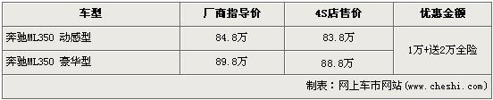 記者目前北京地區(qū)奔馳經(jīng)銷店了解到,現(xiàn)在購買奔馳ML350動感版和豪華型的消費(fèi)者都可享受現(xiàn)金1萬元的優(yōu)惠,并且購車的消費(fèi)者還可獲得4S店贈送的全車的保險,價值2萬元左右。銷售人員還介紹,目前4S店內(nèi)沒有奔馳ML現(xiàn)車供應(yīng),欲購買車需等待一個月左右方可提車。