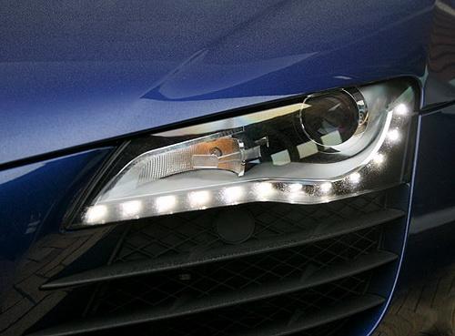在圓潤(rùn)飽滿的車頭造型下,設(shè)計(jì)師將其切分為三個(gè)區(qū)塊;中央為盾形水箱護(hù)罩,兩側(cè)則整合頭燈與進(jìn)氣口設(shè)計(jì)。銳利有神的頭燈組采用HID氣體放電式頭燈,而12支LED構(gòu)成的日間行車燈也成為了而后奧迪家族的招牌特征;此外車主也能選用全LED頭燈,以54支LED提供接近日照的夜間照明效果。