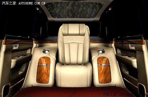 在車內(nèi),也同樣是勞斯萊斯幻影的風(fēng)格:前后排隔離玻璃、羊毛地毯以及星空頂篷等,同樣給人非常豪華的感覺。另外,我們注意到,車內(nèi)的后排只有一個座椅,彰顯了后排乘客的尊貴性。在后排座椅的兩側(cè)有吧臺和冰箱,而在車門內(nèi)側(cè)還有專門放雪茄的儲藏格。