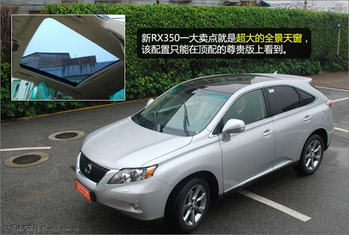 從高處俯瞰新RX350,長890 mm,寬800 mm的全景式天窗映入眼簾。這樣的設(shè)計(jì)可以讓后排乘客也可充分享受到陽光的滋潤。值得一提的是,該項(xiàng)配置僅可在售價達(dá)85.2萬元的RX350尊貴版上看到。