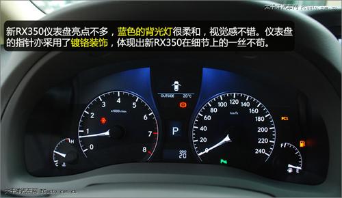 相對(duì)于充滿驚喜的方向盤,新RX350儀表盤的亮點(diǎn)并不多,藍(lán)瑟的背光燈很柔和,視覺感不錯(cuò)。值得一提的是儀表盤的指針亦采用了鍍鉻裝飾,體現(xiàn)出新RX350在細(xì)節(jié)上的一絲不茍。