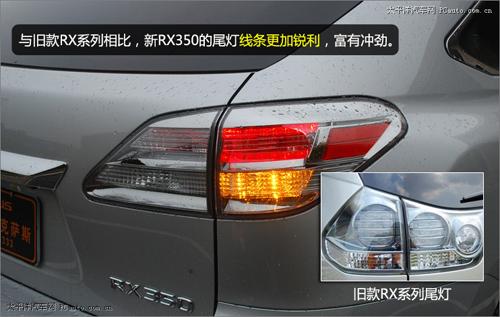 新RX350變化最大的莫過于全新設(shè)計(jì)的組合式尾燈了。更流線型的造型,更絢麗的LED燈組合,營(yíng)造出跑車般的視覺效果。