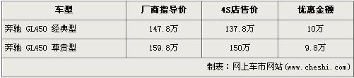 據(jù)經(jīng)銷商處銷售人員介紹,目前國內(nèi)在售的奔馳GL級分為GL450 經(jīng)典版與GL450 尊貴版,上個月兩款車型的優(yōu)惠金額分別為3萬元和4.8萬元,近日奔馳GL系的優(yōu)惠金額暴增,優(yōu)惠近額分別漲到了10萬元和9.8萬元。經(jīng)優(yōu)惠后,低配車型的經(jīng)典版售價將為了137.8萬元,首次跌破140萬,高配的尊貴版車型售價也降為了150萬元。