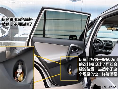 說RAV4的儲物功能,要從頭說起。遵循先左后右的習慣,我們就從左前車門說起。前車門有儲物格是很平常的,不過除此以外,RAV4為我們經(jīng)常會喝的600ml規(guī)格飲料設計了很妥貼的位置。后車門沒有其他儲物功能,但只有這一個放飲料瓶的位置就足夠貼心了,因為確實不是擺樣子的,非常實用。