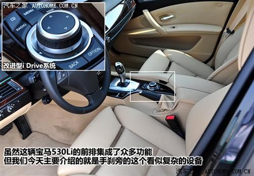 我們拿到的是一輛寶馬530Li豪華型,這是國(guó)產(chǎn)5系轎車的最高配車型,但對(duì)于外形、內(nèi)飾以及空間等方面我們?cè)谝郧暗奈恼轮卸级啻卧敿?xì)介紹過(guò)了,所以在此將不贅述。車內(nèi)唯一能引起我們興趣的就是手剎旁一堆按鍵包圍著一個(gè)金屬旋鈕的設(shè)備——著名的iDrive系統(tǒng),確切說(shuō)是它的進(jìn)化版。