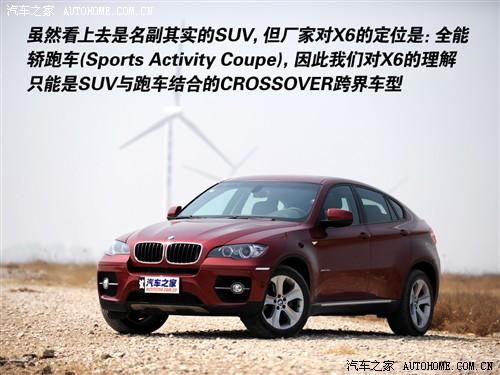 跨界的概念最早出現(xiàn)在尺寸比較小的車(chē)上,例如我們接觸較早的SX4和CROSS POLO,但誰(shuí)也沒(méi)有規(guī)定只有小車(chē)才能跨界吧?現(xiàn)在跨界的概念已經(jīng)延伸到了SUV和跑車(chē)領(lǐng)域,那么今天我們體驗(yàn)的寶馬X6是怎么跨界的呢?廠(chǎng)家說(shuō)它是一款全能轎跑車(chē),或者說(shuō)是一款具備越野功能的轎跑車(chē),所以我們可以認(rèn)為它是一款SUV和轎跑車(chē)跨界的車(chē)型。