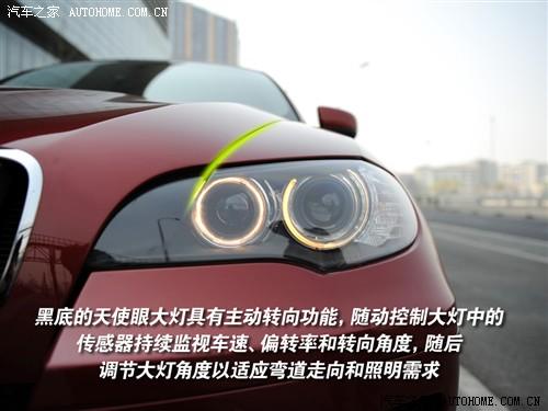 X6在細(xì)節(jié)的設(shè)計(jì)上也沒有偷懶,除了前臉的雙腎形格柵很難創(chuàng)新以外,其他很多細(xì)節(jié)還是很有特色的。格柵下面的蜂窩狀進(jìn)氣口和X5的比較接近,就像鱷魚在咬到獵物之后,即將合上的大嘴一樣。大燈則是非常聰明的主動轉(zhuǎn)向頭燈,天使眼也絕對不會缺席,黑色的底色很配X6的設(shè)計(jì)風(fēng)格。