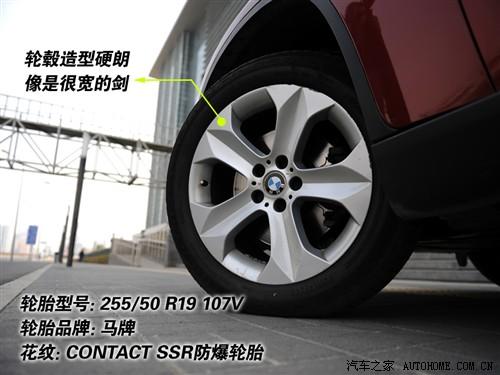X6的輪轂是我十分喜歡的類型,不是很有“張力”但絕對看上去夠力量感,五個輻條就像五支古代西方武士所使用的比較寬的劍。前后一樣的輪胎寬度都是255mm,品牌還是寶馬比較青睞的馬牌,而且還是防爆胎,不過胎壁不像3系使用的那樣堅(jiān)硬;y雖然不是十分細(xì)碎但也絕對不像專業(yè)SUV那樣粗大,更多還是照顧了公路性能。