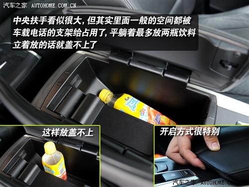 不過手套箱和扶手箱里面的儲物能力就不敢恭維了,空間都不是很大,手套箱里面還有CD碟倉,而扶手箱里面有車載電話的支架,所以這兩處空間表現(xiàn)都比較一般。