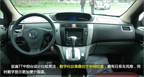 景逸TT的儀表盤位于中控的正中央,紅色的背光特別醒目,發(fā)動機(jī)轉(zhuǎn)速、車輛時速、油料情況、音響、空調(diào)控制等信息都能得到充分的顯示。中控臺上采用人機(jī)工程學(xué)原理設(shè)計的各種按鍵,簡單易用,處處體現(xiàn)了人性化關(guān)懷的設(shè)計元素。而且,“景逸TT”換擋桿也移至了中控臺上,不僅使用順手便利,更為駕駛員右側(cè)騰出了更大的活動空間。