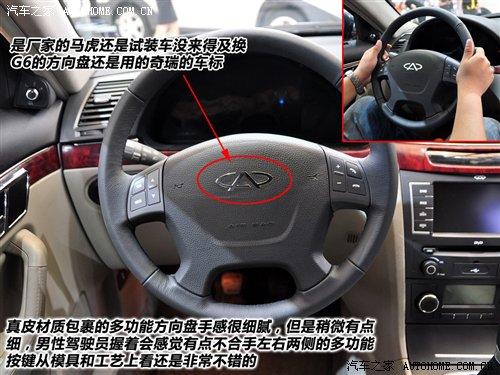 一坐進(jìn)G6車內(nèi),一眼就先看到了它的一個(gè)小BUG——作為奇瑞瑞麒品牌產(chǎn)品的G6,既然已經(jīng)有了自己新的車標(biāo),為什么方向盤上的LOGO還要用奇瑞的呢?是廠家的馬虎還是來不及換標(biāo)呢?希望廠家的朋友盡早對此作出調(diào)整,現(xiàn)在這樣給人感覺很不好,有拼湊之嫌。不過,這個(gè)用真皮材質(zhì)包裹的多功能方向盤的手感還真挺不錯(cuò)的,接觸面手感比較細(xì)膩,只是作為男性駕駛員,編輯認(rèn)為方向盤稍微有點(diǎn)細(xì),握著有點(diǎn)不太合手。左右條幅上的功能按鍵從模具工藝上看還是值得肯定的。
