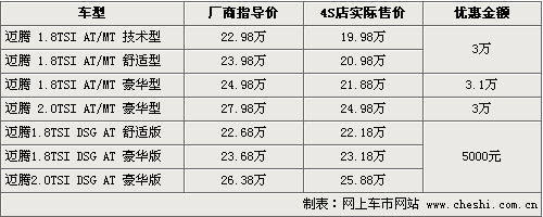據(jù)一汽大眾北京地區(qū)4S店銷售人員介紹,目前老款的邁騰車型數(shù)量已經(jīng)不多了,只有少量1.8T和2.0車型。新款DSG版本車型目前在售的有三款,包括了1.8TSI自動檔舒適版和豪華版,以及2.0TSI 自動豪華版。新款售價相比老款有一定幅度的降低,但性價比更高。目前購買新款車型的消費者,也可以有5000元的現(xiàn)金優(yōu)惠。