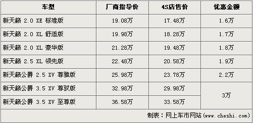 根據(jù)4s店銷售人員介紹,近期購買新天籟的消費者可以享受到全系最高3萬元的優(yōu)惠。新天籟車型分為2.0、2.5以及3.5三個排量,3.5L車型目前讓利3萬元達(dá)到了全系的最高,經(jīng)優(yōu)惠后3.5 尊馭版和3.5至尊版售價分別降到了29.98萬元和33.58萬元。而其他兩個排量車型則采用的是買車購置稅減半的優(yōu)惠政策,根據(jù)消費者要求的不同,減去的一半購置稅也可以抵車價。全系入門級的2.0標(biāo)準(zhǔn)版經(jīng)優(yōu)惠后,售價跌破18萬元,僅為17.48萬元。優(yōu)惠銷售人員還介紹,新天籟全系均無現(xiàn)車,欲購買車需交訂金1萬元,約等1個月可提車。