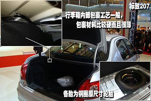 標(biāo)致207的隨車(chē)工具就放在備胎的旁邊,相比之前三款車(chē)型單獨(dú)設(shè)計(jì)的工具箱而言成本明顯更加低廉一些。其行李箱內(nèi)部的包裹材料質(zhì)地很硬并且厚度也明顯相比前三款車(chē)型更薄。