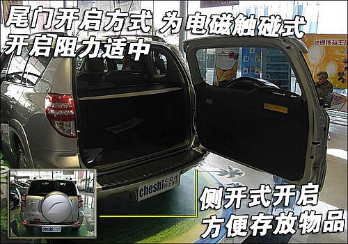 豐田國產(chǎn)RAV4尾門為電磁式側(cè)開啟,在實(shí)際使用過程發(fā)現(xiàn)其開啟力度適中。由于采用側(cè)門開啟方式,所以十分方便乘客存放物品。