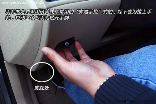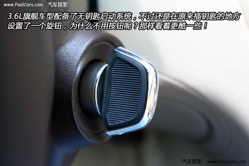 3.6L旗艦車型配備了無鑰匙啟動系統(tǒng),不過還是在原來插鑰匙的地方設(shè)置了一個旋鈕,為什么不用按鈕呢?那樣看著會更酷一些!手剎采用了美式車型常用的“腳蹬手拉”式,踩下去為拉上手剎,拉動扳手為松開手剎。