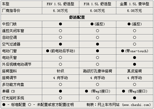 在舒適配置方面,三款車型中吉利金鷹明顯高出一截,遙控門鎖、電動(dòng)門窗及電動(dòng)天窗都為標(biāo)配,并且座椅也為真皮材質(zhì)。而駿捷FRV采用前電動(dòng)后手動(dòng)的設(shè)計(jì)有些不應(yīng)該,并且座椅也只為針織材質(zhì)。三款車都標(biāo)配了單碟CD,滿足消費(fèi)的娛樂(lè)需求。