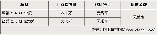 據(jù)經(jīng)銷商銷售人員介紹,道奇鋒哲車型已經(jīng)停產(chǎn),并且各道奇經(jīng)銷店已經(jīng)沒(méi)有鋒哲現(xiàn)車,近期也不會(huì)再進(jìn)口此車。欲購(gòu)買此車的消費(fèi)者需等待一段時(shí)間,如果復(fù)產(chǎn)國(guó)內(nèi)也只會(huì)引進(jìn)30.8萬(wàn)元的高配車型。